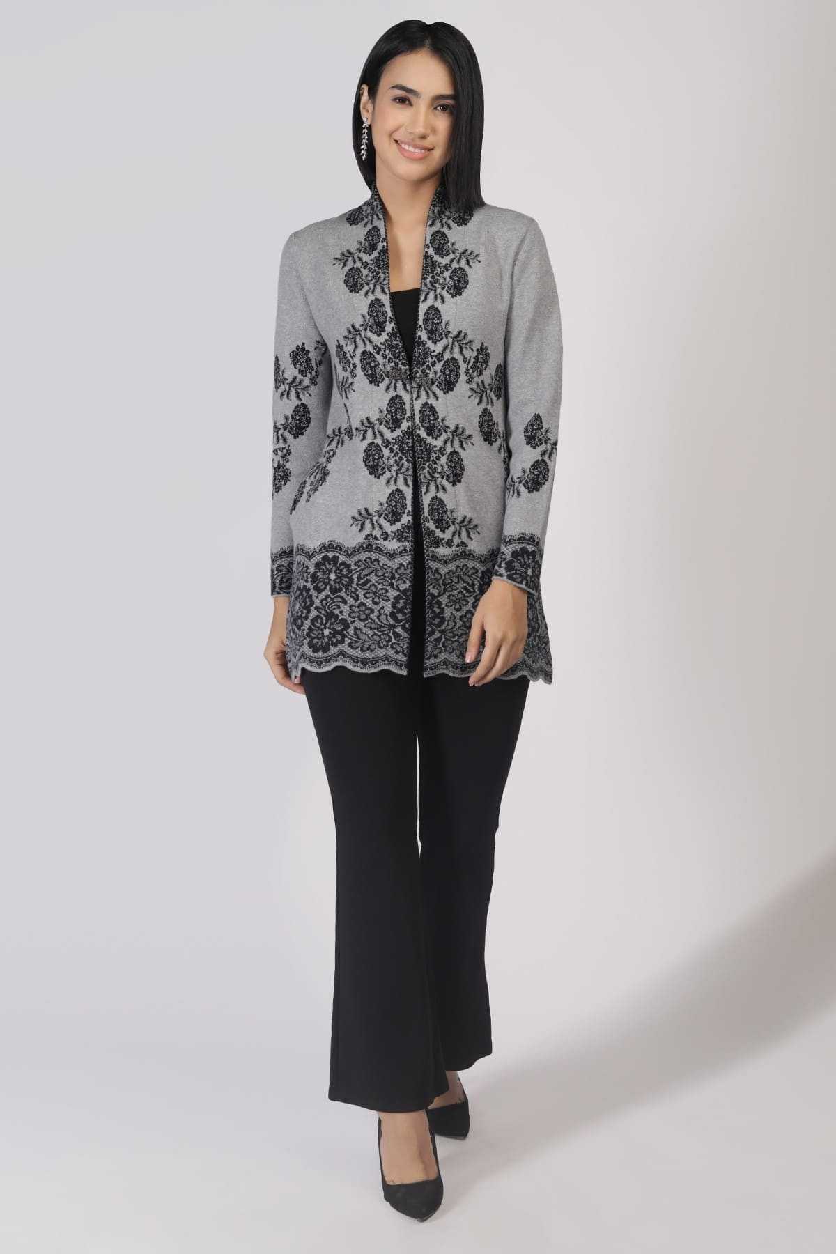 FLORAL LACE JACQUARDN SHAWL COLLARED CARDIGAN